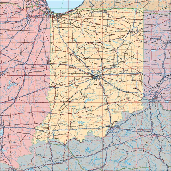 ![]() Detail view of EPS Vector Map of Indiana - the land fill color is switched on. The EPS Vector map for Indiana has 22 layers which may be individually modified or removed. Select the Vector only EPS map of Indiana option to download this style map. |